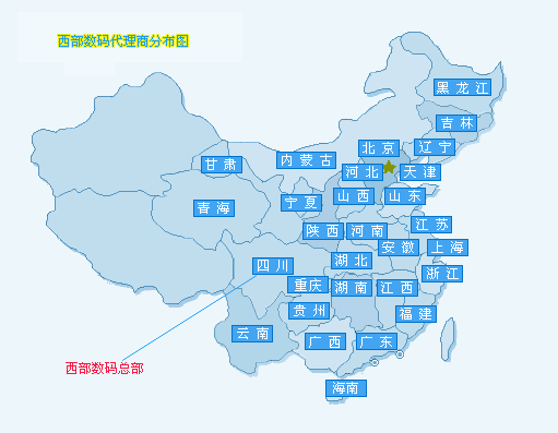 西部数码发展全国各地区代理,是为了更快速更优质地为客户提供本地化服务,西部数码代理商分布于北京、天津、山东、河北、江苏、上海、浙江、广东、福建、江西、湖南、重庆、湖北、安徽、山西、陕西、内蒙图、甘肃、云南、海南等多个省市自治区,各区域提供的代理商服务和西部数码官方网站提供的业务内容保持了同步更新。