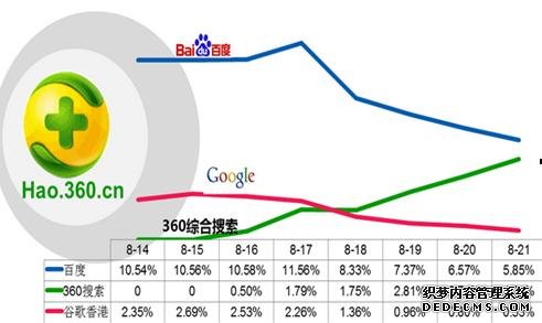 或许是360。为什么百度会对360综合搜索引擎大为光火,这有赖于360一直以来着力打造的一个强大的、互为关联的产品体系。以免费杀毒为起点,360首先牢牢占据了一个客户进入的端口,通过不同终端的软件产品以及宣传攻势,360是否能够成为百度的挑战者或者搜索引擎市场的搅局者?尚不可知,但是根据一些数据,已经可以看见360非常凛冽的攻势。
