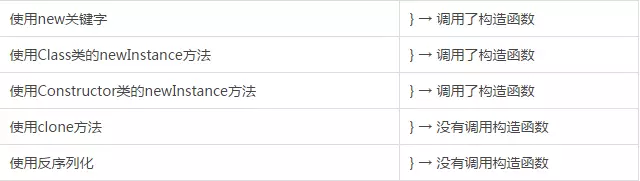 如果你运行了末尾的的程序,你会发现方法1,2,3用构造函数创建对象,方法4,5没有调用构造函数。