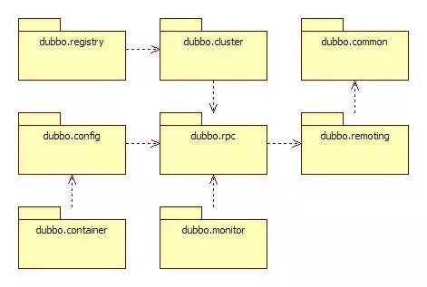 Dubbo以包结构来组织各个模块,各个模块及其关系,如图所示: