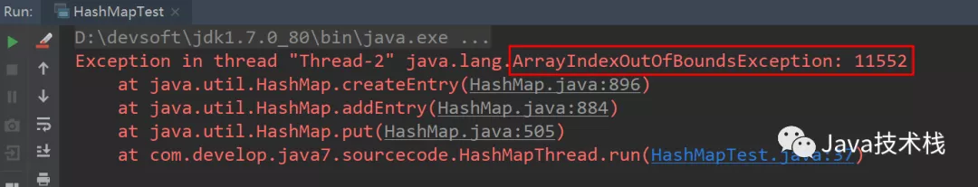 上述代码比较简单,就是开多个线程不断进行put操作,并且HashMap与AtomicInteger都是全局共享的。
