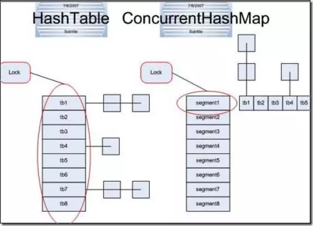 这个也是最推荐使用的线程安全的Map,也是实现方式最复杂的一个集合,每个版本的实现方式也不一样,在jdk8之前是使用分段加锁的一个方式,分成16个桶,每次只加锁其中一个桶,而在jdk8又加入了红黑树和CAS算法来实现。