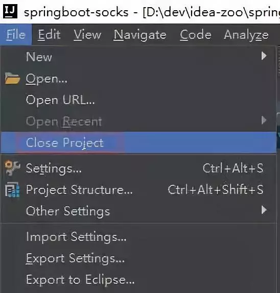答:点击File -> Open 打开 工程文件夹即可,注意先配置好JDK、Maven等基础配置。
