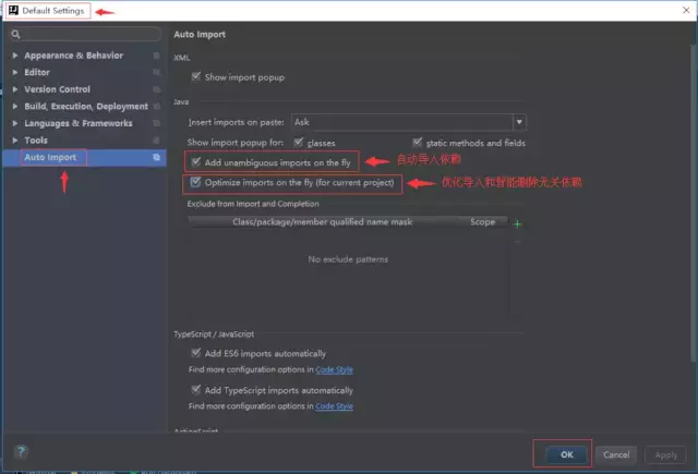 具体步骤:顶部工具栏? File ->Other Settings -> Default Settings -> Auto Import
