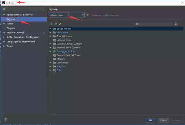 具体步骤: File -> Settings -> Keymap - > 选择Eclipse .