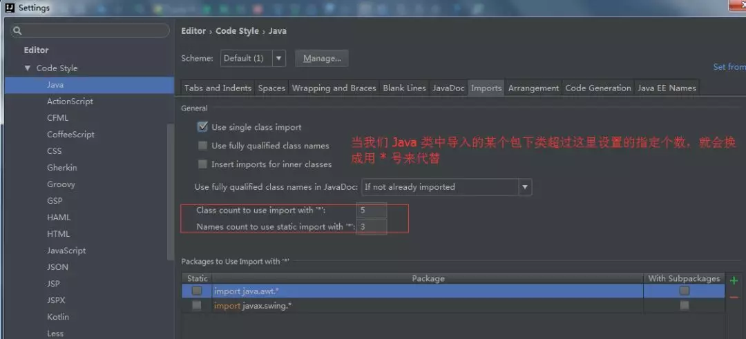 还有就是优化引入,假设你引入了一个包下的很多个文件,他就会给你优化成xxx包名.*。也就是下面这个图的配置啦。