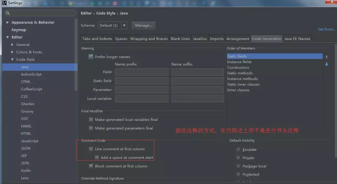 具体就看下面这个图的三种情况下的注释的显示情况。看你喜欢哪个注释风格,就怎么设置。
