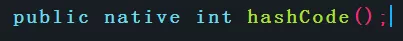 可以看出,hashCode()是一个native方法,而且返回值类型是整形;实际上,该native方法将对象在内存中的地址作为哈希码返回,可以保证不同对象的返回值不同。