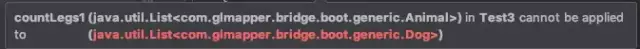 所以,对于不确定或者不关心实际要操作的类型,可以使用无限制通配符(尖括号里一个问号,即 ),表示可以持有任何类型。像 countLegs 方法中,限定了上界,但是不关心具体类型是什么,所以对于传入的 Animal 的所有子类都可以支持,并且不会报错。而 countLegs1 就不行。