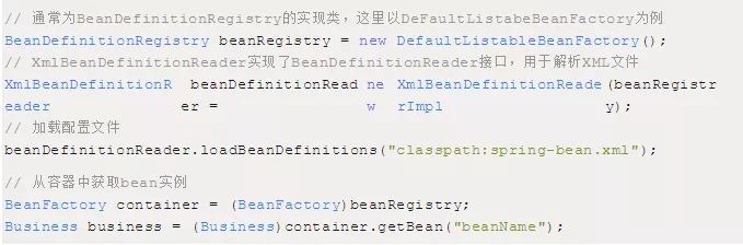 来看一个简单的例子吧,过往,所有的bean都定义在XML配置文件中,下面的代码将模拟BeanFactory如何从配置文件中加载bean的定义以及依赖关系: