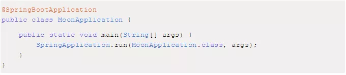 典型的Spring Boot应用的启动类一般均位于 src/main/java根路径下,比如 MoonApplication类: