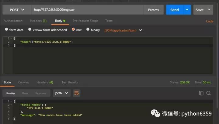 你可以在不同的机器运行节点,或在一台机机开启不同的网络端口来模拟多节点的网络,这里在同一台机器开启不同的端口演示,在不同的终端运行一下命令,就启动了两个节点:http://127.0.0.1:8000和 http://127.0.0.1:8100