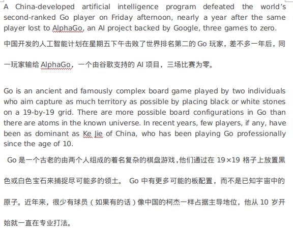 输出仍为 Word 文档(*.docx),以段落为单位,中英文对照,方便校对。如下图所示: