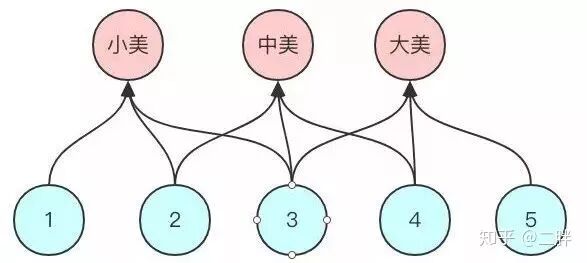 举个例子:假设初始美眉群体有三个用户:小美、中美和大美,关注关系如下所示: