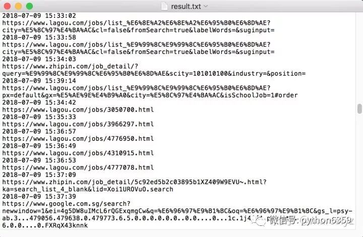 通过这个脚本,我们可以把url和访问时间提取出来,并且存储在result.txt中,下图就是我得到的部分结果