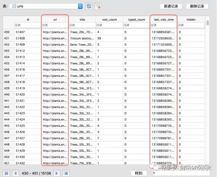 (1) 首先我们用DB Browser for SQLite来看下History中的urls表的数据组成