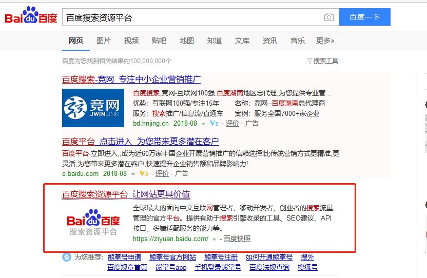 百度搜索“百度搜索资源平台”,如下图,再到百度搜索资源平台注册一个账号;